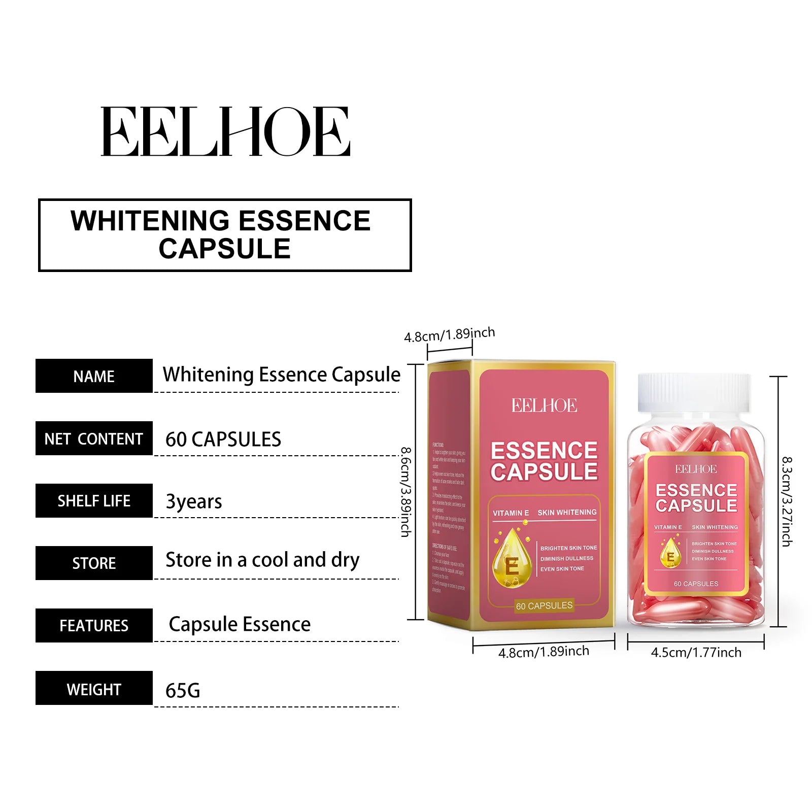 - 1x Pack of 60 Skin Whitening Essence Capsules